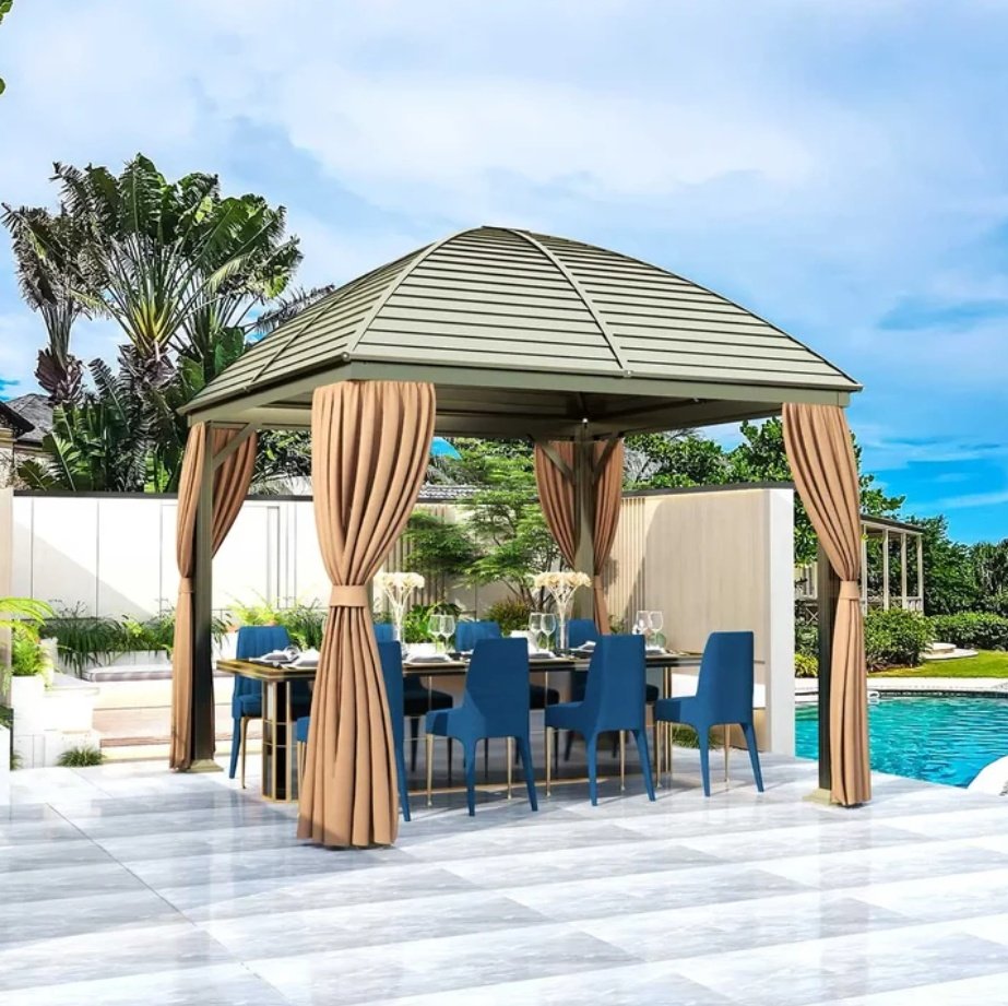 Enhancing Outdoor Work Environments: The 10′ x 10′ Hardtop Curved Steel Roof Patio Gazebo